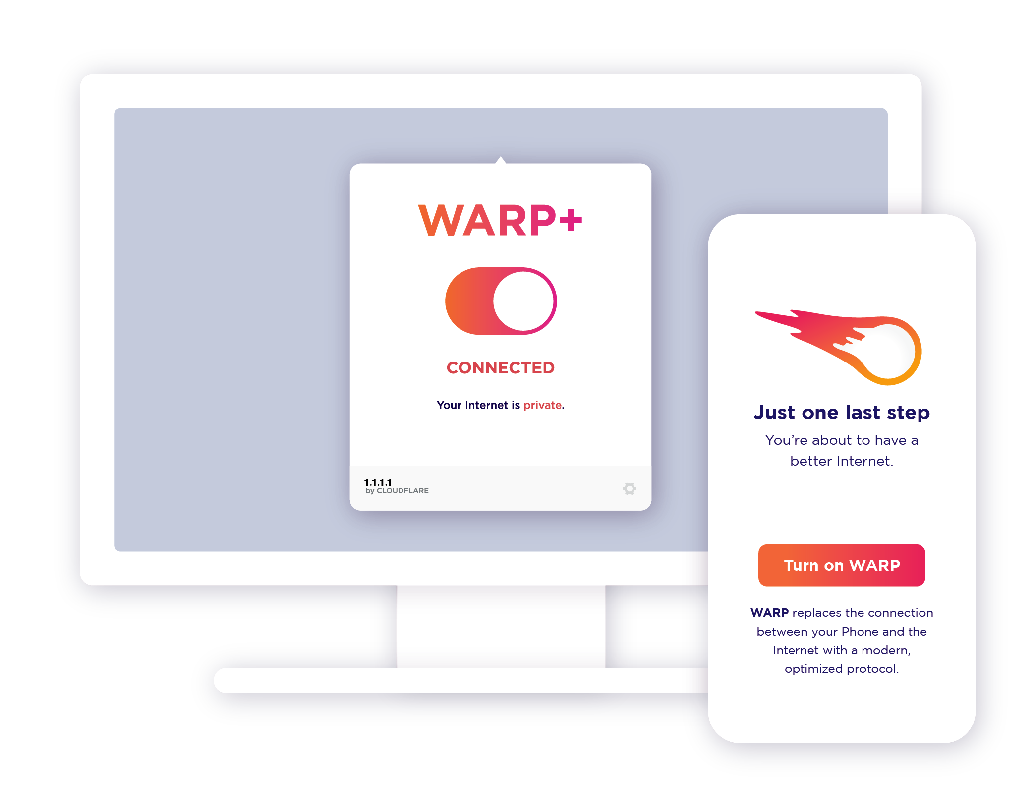 1.1.1.1 con WARP sostituisce la connessione tra il tuo dispositivo e Internet con un protocollo moderno e ottimizzato.